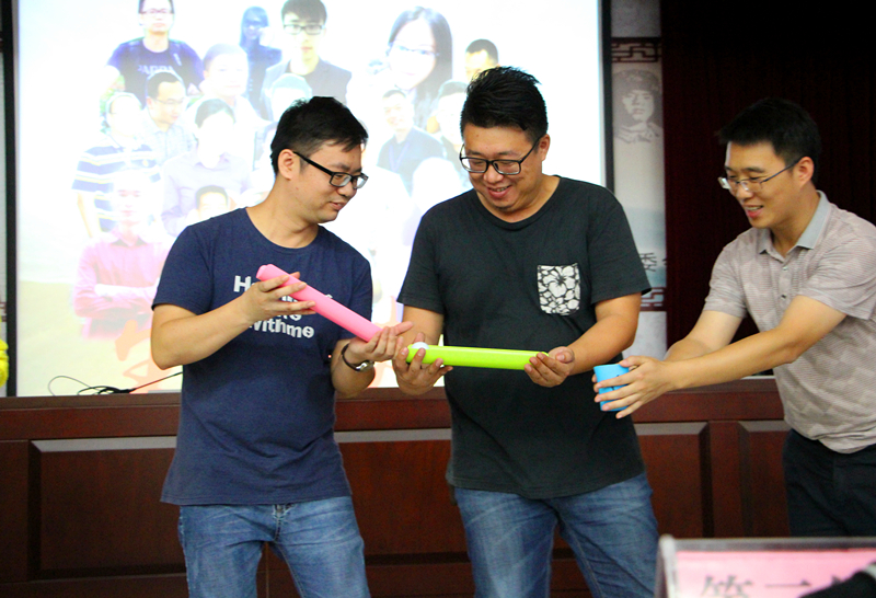 既然是集體過生日,自然少不了有趣歡樂的集體游戲,在大家的歡聲笑語中,“前世隊”通過隊員的齊心協(xié)力、相互配合,戰(zhàn)勝了“今生隊”,贏得切蛋糕的“屠龍刀”。最后,大家圍繞著甜蜜的生日蛋糕,齊唱生日祝福歌,一起吹蠟燭、吃蛋糕,共同度過了一次愉快而又溫馨的集體生日會。