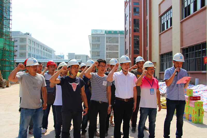 當(dāng)天,驕陽似火。綠港集團黨委書記、董事長、總經(jīng)理龔國強莊重地給黨員們授予“黨員先鋒隊”紅旗,給青年突擊隊員們授予“青年突擊隊”紅旗,并提出了幾點要求:一是要緊緊圍繞項目建設(shè)開展突擊活動。全體黨員干部和青年同志要充分發(fā)揚不怕吃苦、勇于負重,敢打硬仗、能打硬仗的優(yōu)良傳統(tǒng),切實發(fā)揮“黨員先鋒隊”、“青年突擊隊”在“急、難、險、重”任務(wù)中的生力軍作用。二是要把項目建設(shè)與錘煉黨員意志相結(jié)合。黨員干部和青年同志們要充分發(fā)揮模范帶頭作用,深入項目一線,了解項目建設(shè)困難,想方設(shè)法協(xié)調(diào)解決。要在項目建設(shè)中增強本領(lǐng)、錘煉意志、增強黨性,更好的服務(wù)入?yún)^(qū)企業(yè)建設(shè)發(fā)展。三是要充分發(fā)揮“黨建帶團建”作用?!包h員先鋒隊”要引導(dǎo)和指導(dǎo)好“青年突擊隊”開展好項目建設(shè),黨員干部與青年同志們要相互關(guān)心,密切配合,充分發(fā)揮整體功能和團隊精神,確保瑞聲廠房項目能在6月25日完工交付9號廠房、7月25日完工交付3、13號廠房的任務(wù)目標。