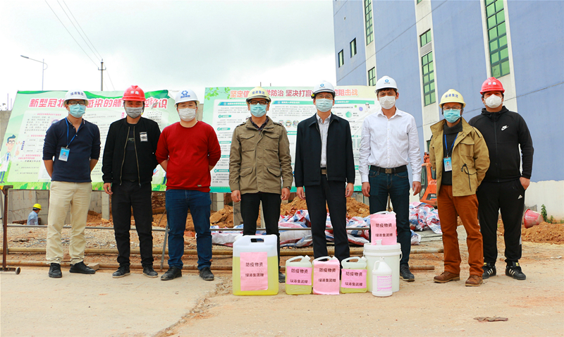 綠港集團(tuán)學(xué)雷鋒志愿者將防疫物資送到瑞聲音卓項(xiàng)目現(xiàn)場(chǎng)