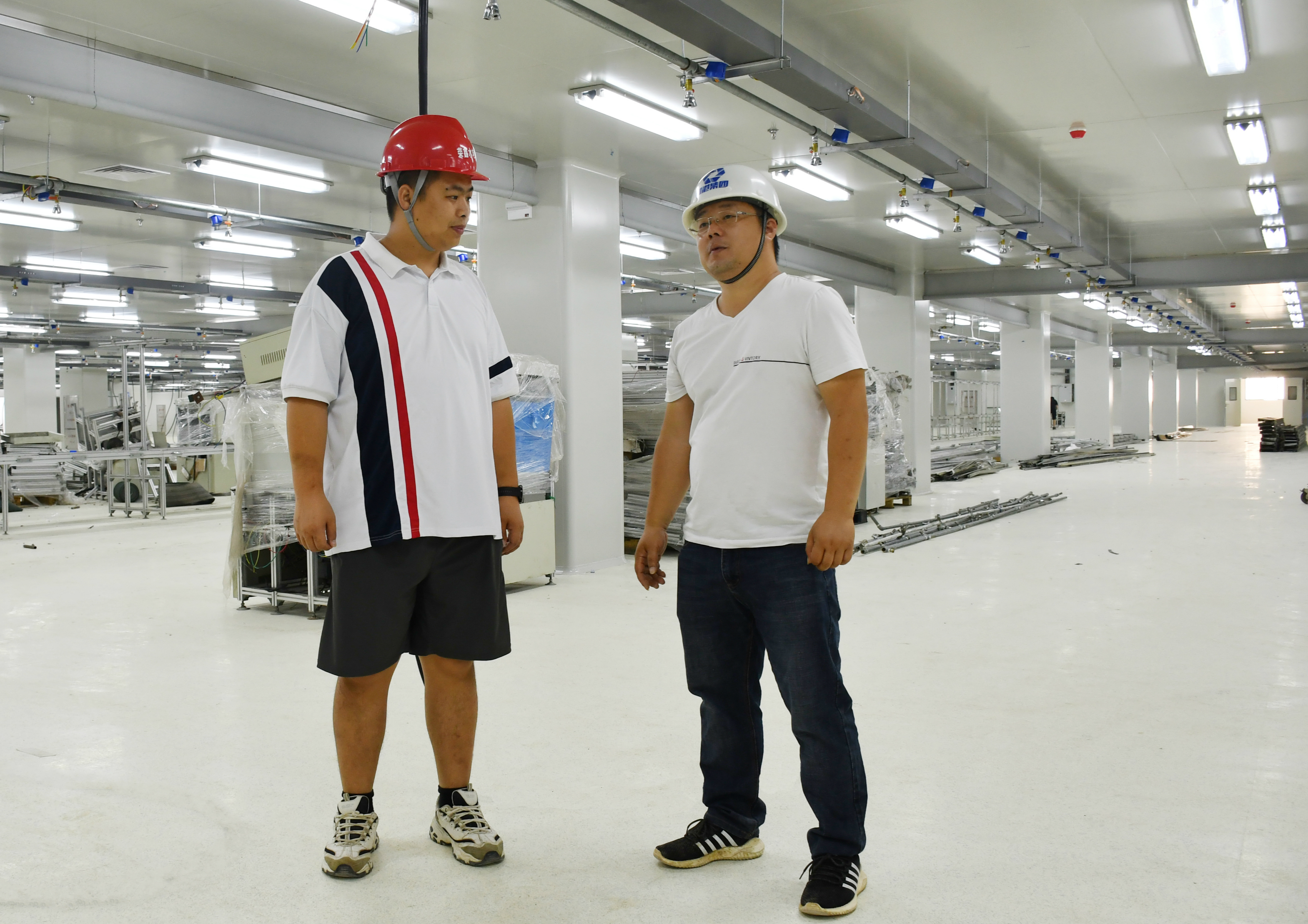 項目開工建設(shè)后,他時常召集項目成員研究探討優(yōu)質(zhì)高效的施工技術(shù)、多工種交叉施工作業(yè)等施工方案,“5+2”、“白加黑”地趕工建設(shè),僅用60天,確保了項目第一階段9號廠房1、2層裝修施工任務(wù)于2018年6月28日圓滿完成。在2018年9月10日的瑞聲廠區(qū)舉行項目投產(chǎn)儀式,南寧市委王小東書記宣布項目正式投產(chǎn)。王小東書記、瑞聲公司潘董事長都對項目建設(shè)工作給予高度評價,稱其為“南寧速度”。