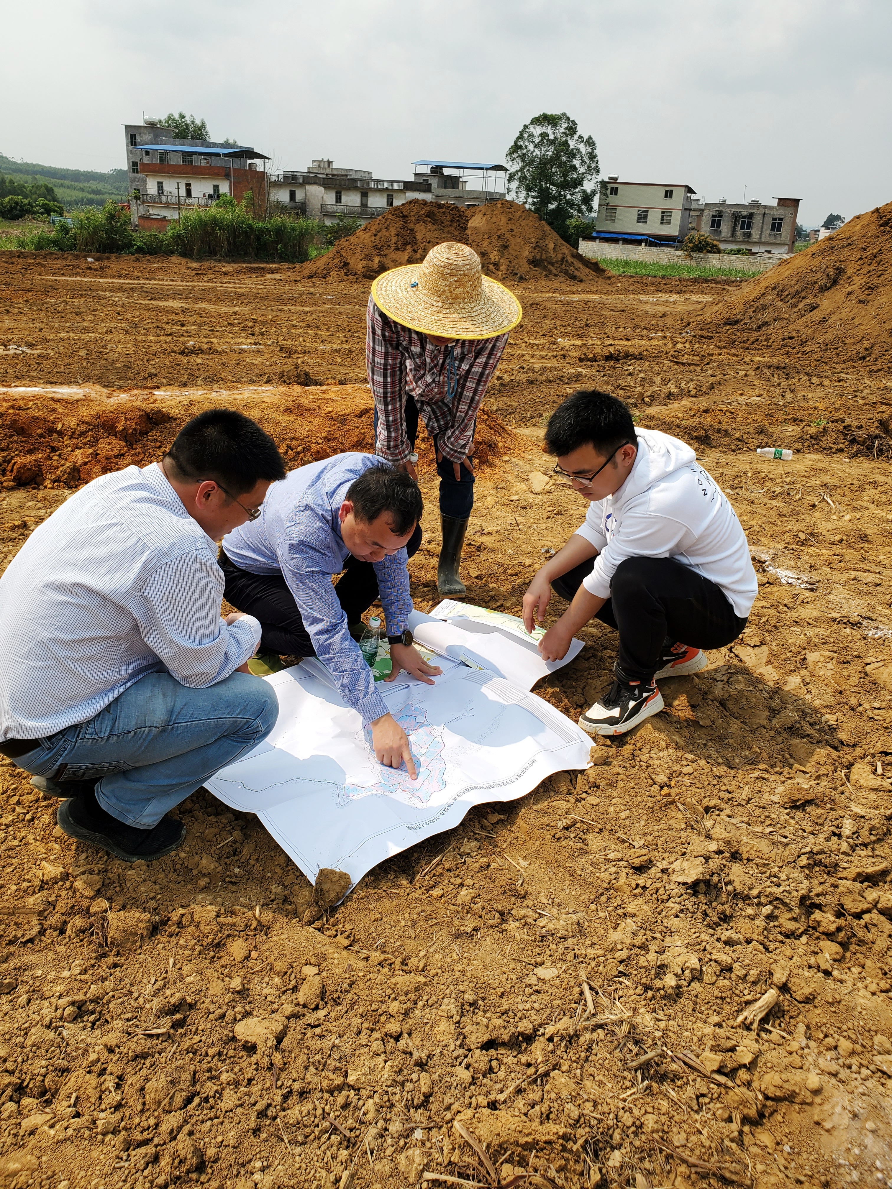 項(xiàng)目勘探初期,科巨公司多渠道開(kāi)展選址工作,總經(jīng)理覃遠(yuǎn)生利用本地人的先天資源優(yōu)勢(shì),積極對(duì)接吳圩鎮(zhèn)國(guó)土資源所,政企結(jié)合多次走訪吳圩鎮(zhèn)各村委大隊(duì),積極開(kāi)展旱改水政策宣傳,尋找選址線索。同時(shí)以市政二部作為班底,分管副總經(jīng)理莫際樂(lè)為組長(zhǎng),市政二部副經(jīng)理張海毅、土建工程師李永華為主力,成立旱改水專項(xiàng)工作小組,走村進(jìn)寨,跋山涉水,深入田間地頭開(kāi)展群眾宣講,足跡遍布吳圩鎮(zhèn)的大小村落,山野村林,在自治區(qū)國(guó)土測(cè)繪院指導(dǎo)下,最終擇優(yōu)選定平垌村作為旱改水項(xiàng)目實(shí)施地。