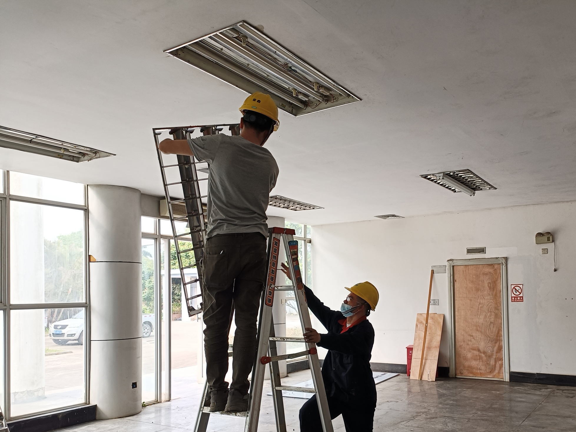 由于年久失修,部分房門已經(jīng)被嚴(yán)重侵蝕,想要拆除并非易事,施工人員每3人一組,分工合作,合力拆除,并對(duì)墻體進(jìn)行修復(fù),重新安裝大門。