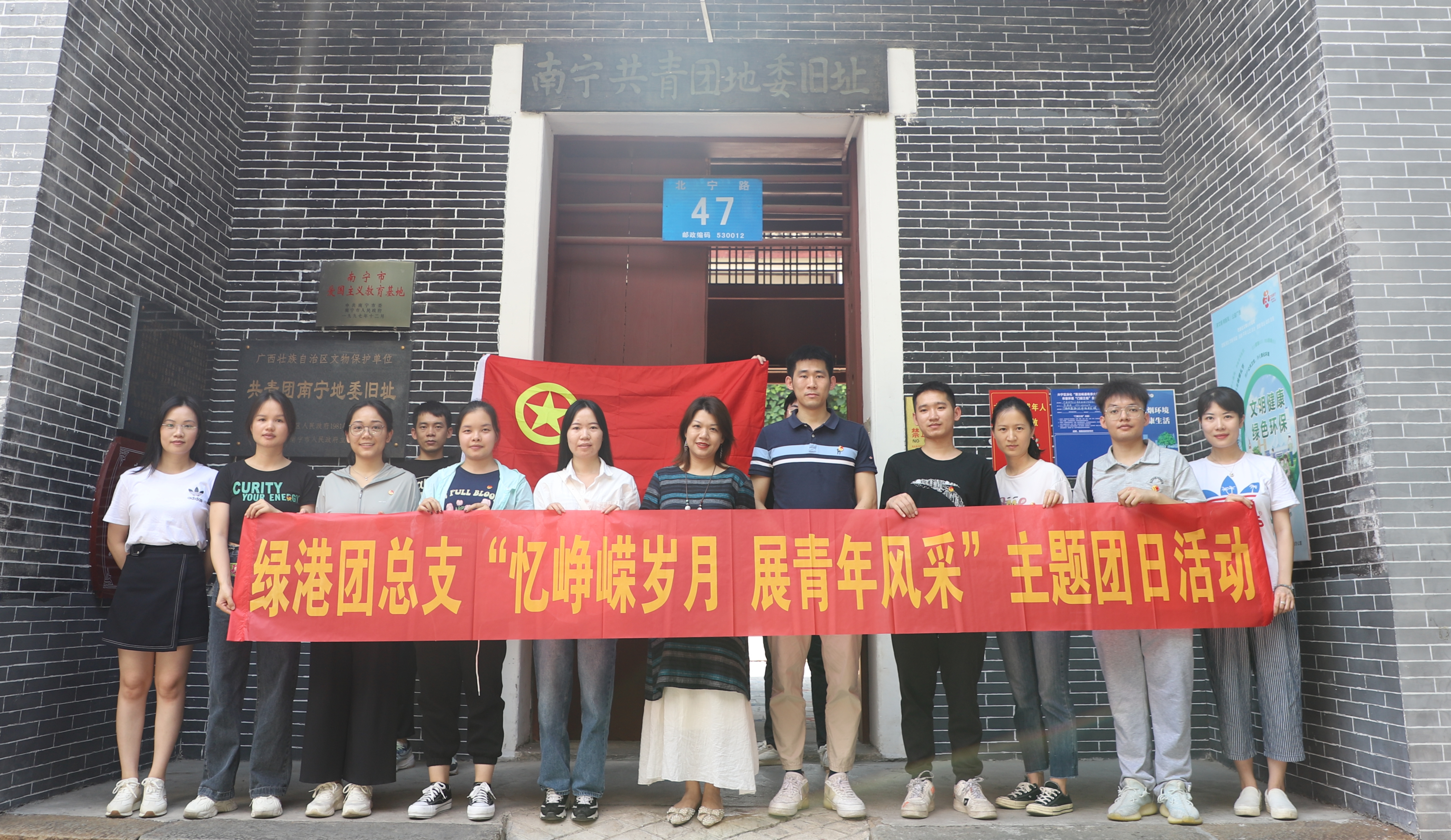 為創(chuàng)新利用紅色資源,貫徹落實(shí)黨的二十大精神,讓學(xué)習(xí)教育“走新”更“走心”,加強(qiáng)青年之間的互動(dòng)交流,5月31日,綠港集團(tuán)團(tuán)總支前往南寧共青團(tuán)地委舊址開展“憶崢嶸歲月 展青年風(fēng)采”主題團(tuán)日活動(dòng)。