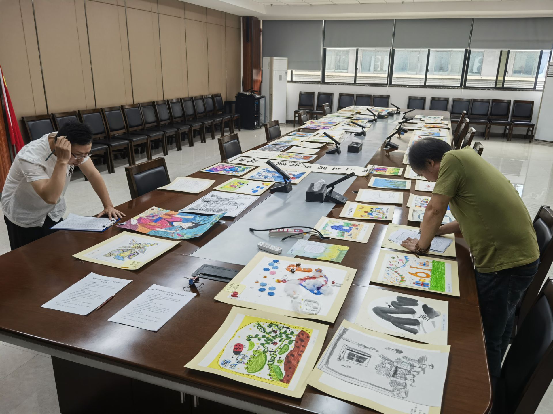 為了確保比賽的公正性和專業(yè)性,綠港集團(tuán)創(chuàng)新性地采用了現(xiàn)場與遠(yuǎn)程相結(jié)合的評審模式,特邀專業(yè)評委老師、學(xué)生評委組成評審團(tuán)。部分無法親臨現(xiàn)場的評委遠(yuǎn)程參與了作品評審過程,與現(xiàn)場評委一同對參賽的65幅作品從繪畫主題、構(gòu)圖完整、色彩和諧、作品感染力和創(chuàng)作力等方面對作品進(jìn)行細(xì)致地考量打分,確保每一幅作品都能得到公平且專業(yè)的評價。經(jīng)過多輪嚴(yán)格篩選,最終從兩個年齡段組別(3-6歲、7-12歲)中評選出了共計14個獎項的得主,包括每個組別的一等獎1名、二等獎2名、三等獎4名。