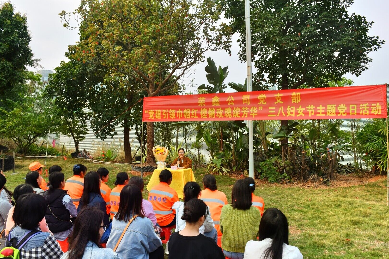 為深入學(xué)習(xí)貫徹黨的二十大精神,凝聚巾幗力量,展現(xiàn)新時代巾幗風(fēng)采。榮鑫公司黨支部堅持黨建統(tǒng)領(lǐng),積極探索“黨建+”工作模式,將黨建與婦女工作有效融合,推動公司事業(yè)向縱深發(fā)展。3月6日,榮鑫公司黨支部組織全體黨員干部、女職工開展“黨建引領(lǐng)巾幗紅 鏗鏘玫瑰綻芳華”三八婦女節(jié)主題黨日活動,集團黨委委員、副總經(jīng)理陸羿冰,榮鑫公司黨支部全體黨員、女職工約50余人參加。